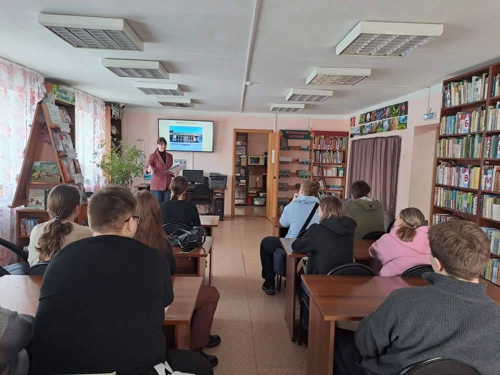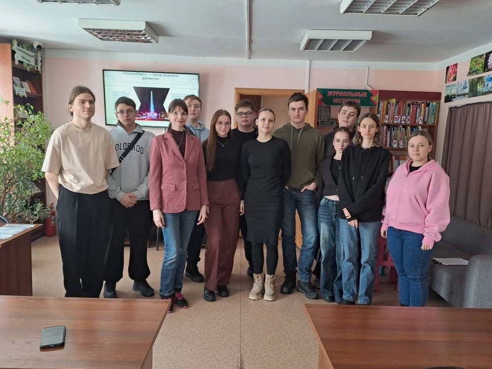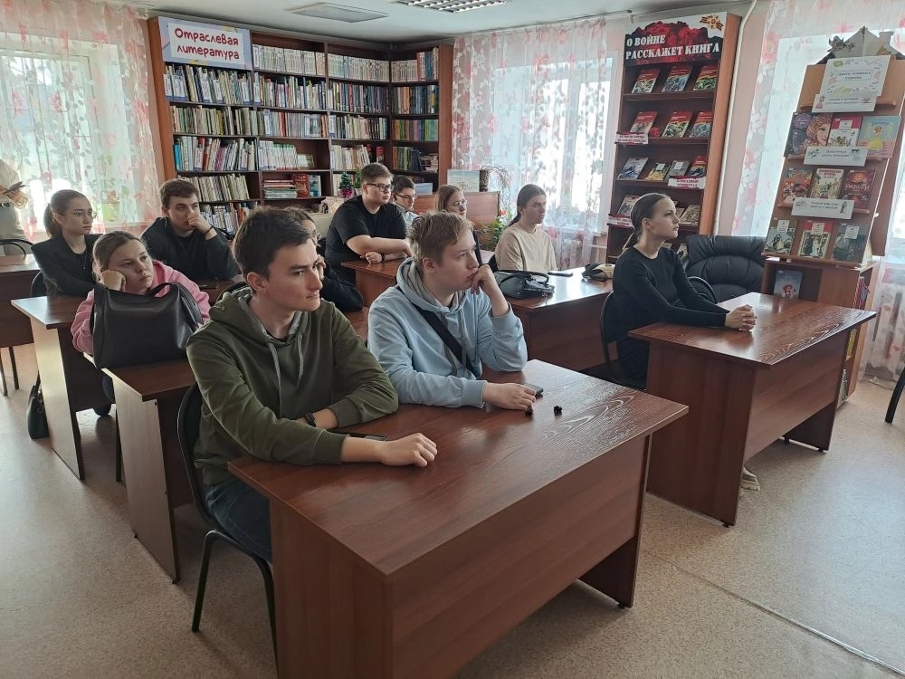17 марта в Библиотеке им. М. М. Пришвина прошел патриотический час «Сибиряки куют Победу» для студентов 1-го курса Сибирского государственного университета инженерии и биотехнологий.