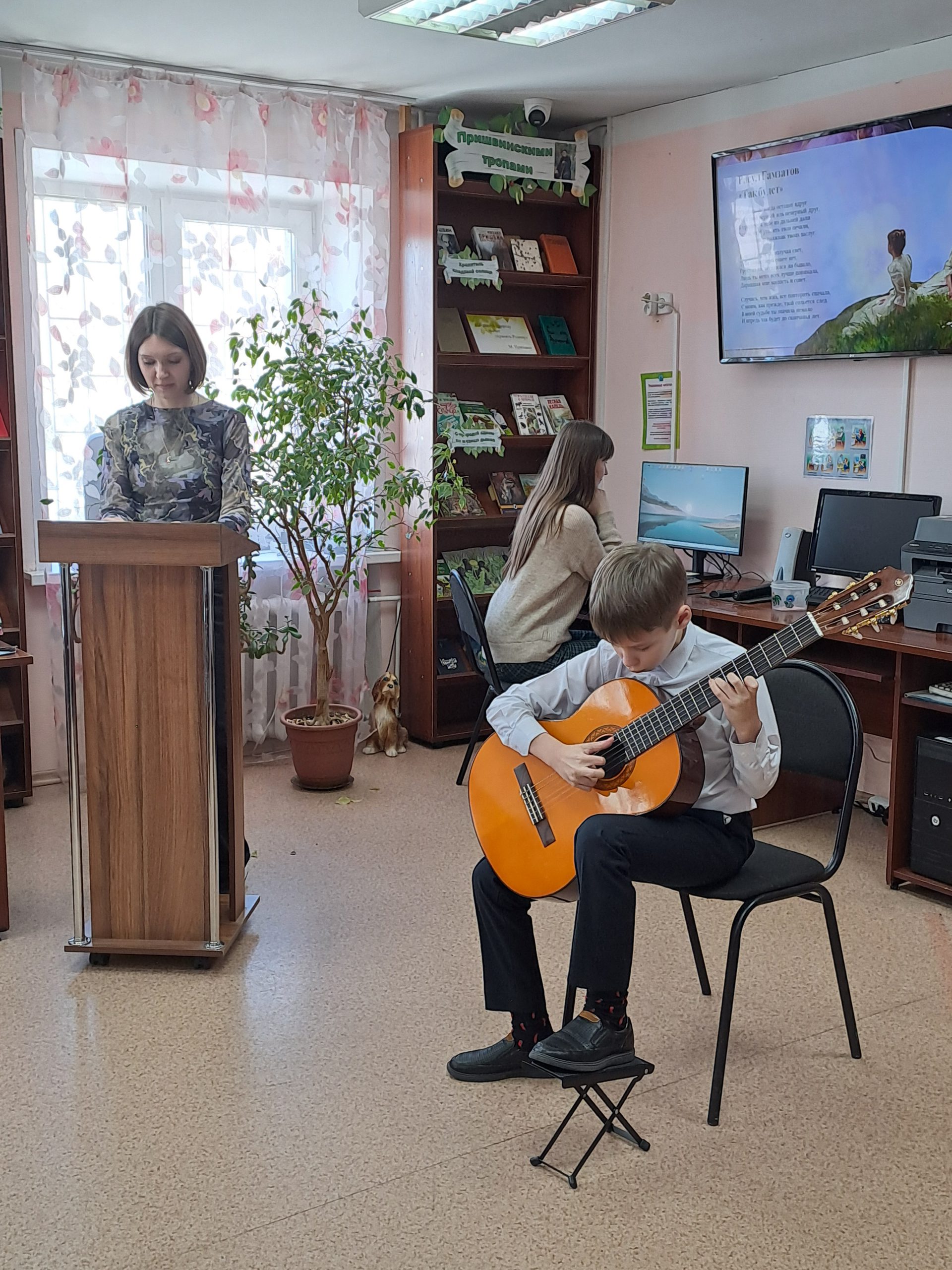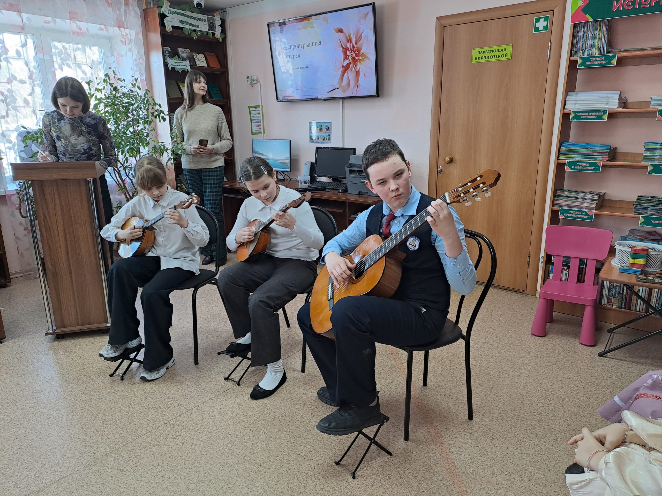Читателей библиотеки пришли поздравить музыкальной программой учащиеся Детской школы искусств №12.