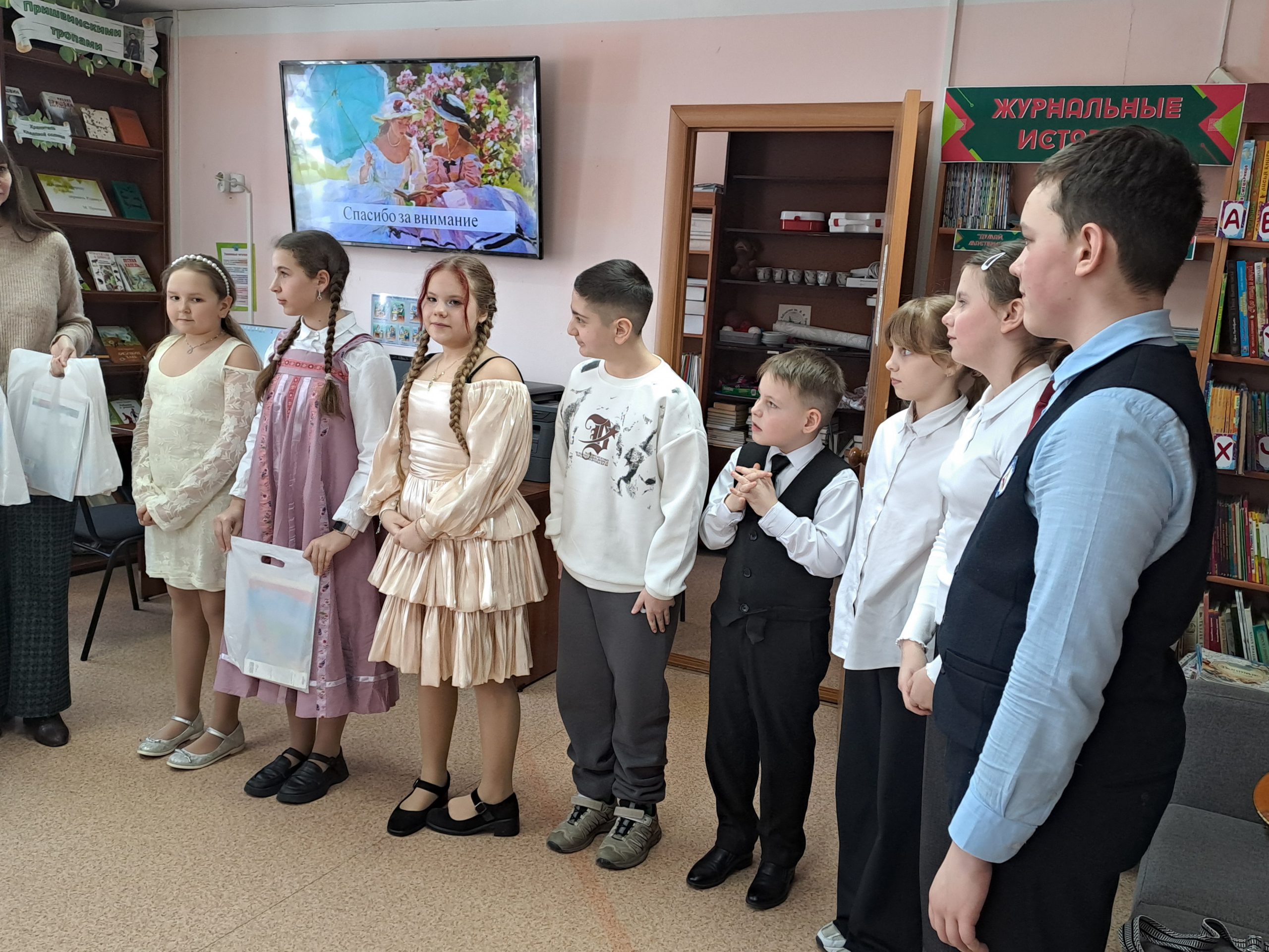 В ходе командной игры между четырьмя командами — «Красными», «Желтыми», «Оранжевыми» и «Синими» — победила команда «Оранжевых», и в качестве небольшого приза заработала фирменные закладки библиотеки Пришвина.