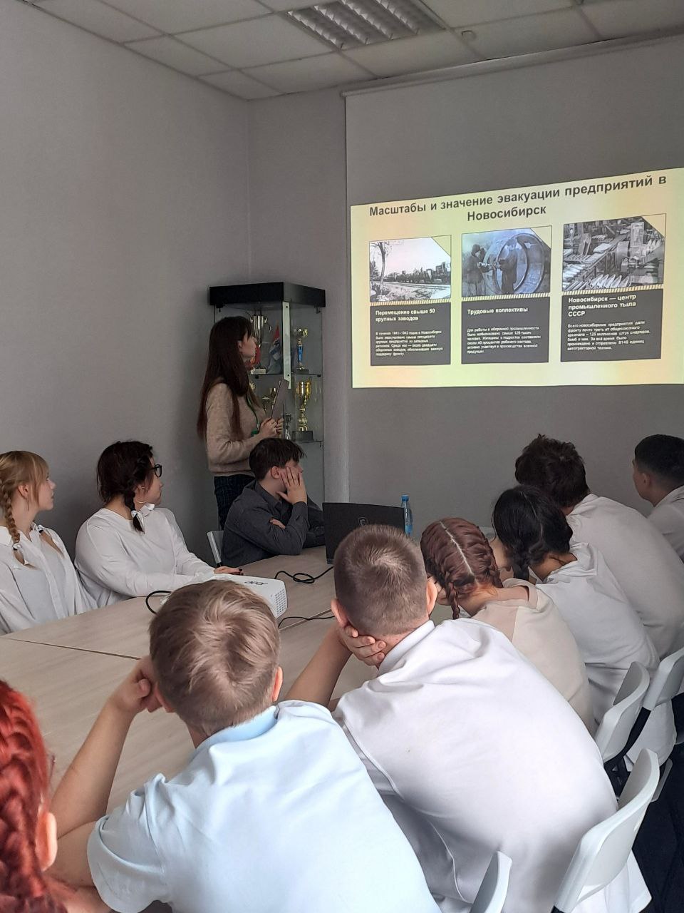 Курсанты познакомились с историей эвакуации заводов в город Новосибирск в годы Великой Отечественной войны. Узнали как героически трудились новосибирцы на заводах, обеспечивая фронт всеми необходимыми ресурсами и вооружением. Фраза «Всё для фронта! Всё для Победы!» стала символом самоотверженности советского народа.