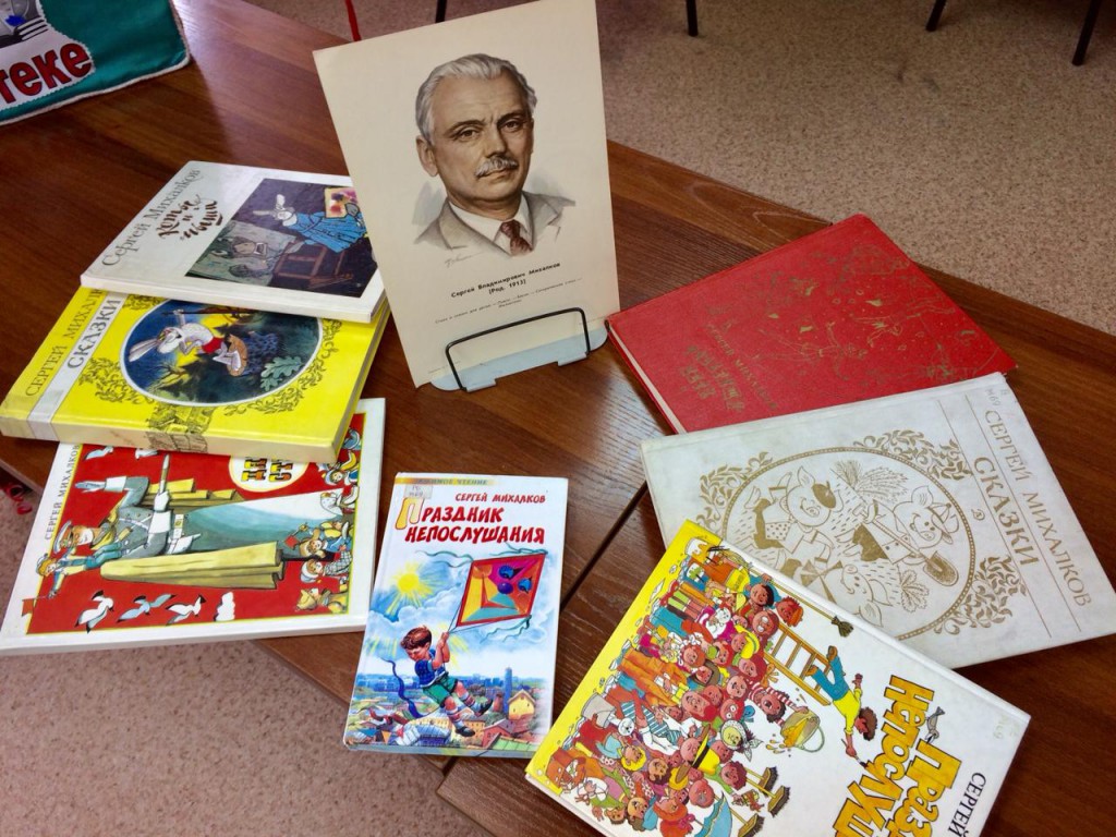 Библиотекарь Новикова А.С. показала детям познавательную видео презентацию о жизни писателя и его творчестве. Ребята узнали о том, как С.В. Михалков начал писать свои первые стихотворения, что он работал в разных жанрах: писал стихи, сказки, басни, сценарии: («Дядя Степа», «Три поросенка», «Басни в прозе», «Сказки», «Товарищи — дети», «Жил-был король», «Стихи и сказки», «Мой друг», «Праздник непослушания»).